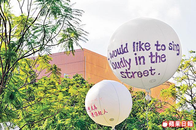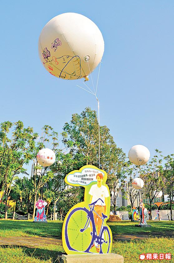 對比其他三間大學,中文大學藝術系在沙田公園的潮裝活動,雖題為《夠膽發夢》,但展品的款式較單一,用一塊膠片寫一名沙田居民的背景,再連着一個寫了其夢想的大氣球飄於空中,共38個,導師莫一新有解釋:「無錯,外形是一模一樣,但內容絕無重複,從藝術上看也是38件藝術品。」當然,藝術這回事各有所好,最要欣賞其實是同學們的心思,他們走訪沙田的中小學及民居,從中帶出沙田友的夢想,學生阿鍾有兩個好回憶:「一次在沙田婚姻登記處碰到香港足球隊的李偉文,他說足球明星的夢早已達到,現夢想做大慈善家!另一個是在沙田公園晨運的伯伯,每天都坐在黃色膠篷下,他說都仔大女大,只希望可到美國跟兄弟相聚,今天我來弄展板時再遇他,所以他的夢想氣球就放在他常坐的位置對面。」能夠看到自己的夢想,不知是何味兒?