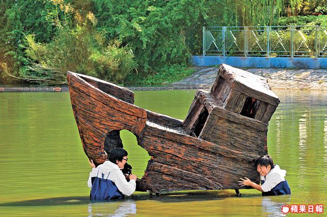 居民的日常生活,絕對是同學作品的概念源頭,如陳日明和張天佑的作品《沉船》:「船很小,好像放大了的魚缸,連我們也一併進入缸裏,大家都是正在游弋的小魚。」藝術就是如此,明白了,便覺有趣,就算置身大環境的公共藝術,亦不減抽象成份。而湖的一邊,黃美鴻同學在小亭設了有動物發聲的裝置,如掀開聖誕卡一樣,打開銀色小卡子,就有青蛙的叫聲,足有24種不同叫法:「有些是自己錄,有些從學校的圖書館找來,聲音會三星期換一次,下回是蟬聲。」有興趣,也可分享自己錄製的動物聲,與民同樂。