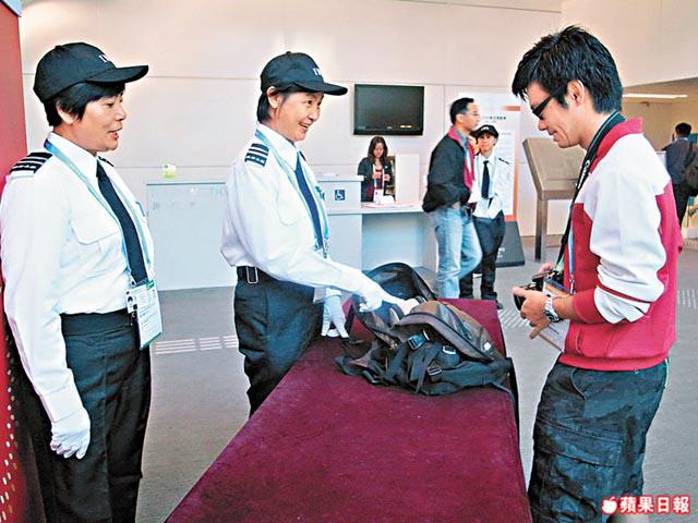 「不過,部份有較出名運動員入住的酒店,如悅來(劉翔)、龍堡(郭晶晶)及香港麗都酒店(林丹)等,保安可能會嚴謹一點。」以昨日伊館安檢為例,保安只隨便看看袋中的物件後就了事,反而位於銅鑼灣中央圖書館的新聞中心,除bagsearch外,還有一隻專門偵查爆破品的警犬看門口。