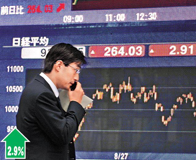 阿聯酋央行答允放水,紓緩中東危機,亞太股市乘勢反彈,上周五跌得最慘烈的恒指及H指昨齊齊大反彈,前者升687點(3.25%),報21821點,後者飆508點(4.07%),報12980點。