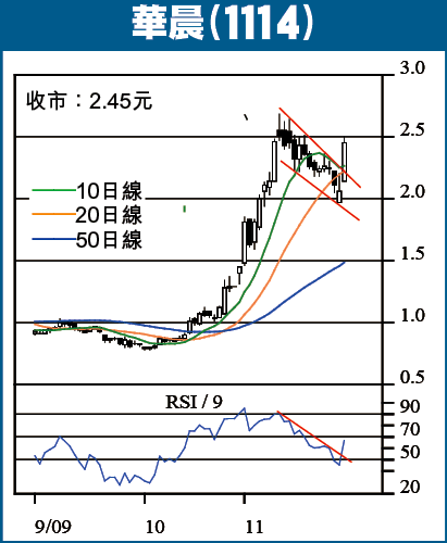 華晨中國(1114)昨收2.45元,升18.9%。股價於上周五向下拋離20日線,但以陽燭倒轉錘收市,顯露反彈契機。技術上,10日線準備下越20日線,但股價於這個時間及時抽升,重返10日及20日線之上,並突破之前的下降阻力軌,可謂升得合時,短線料上試2.68元阻力位,破位看3元,由於昨天升勢頗急,宜採分段收集策略。