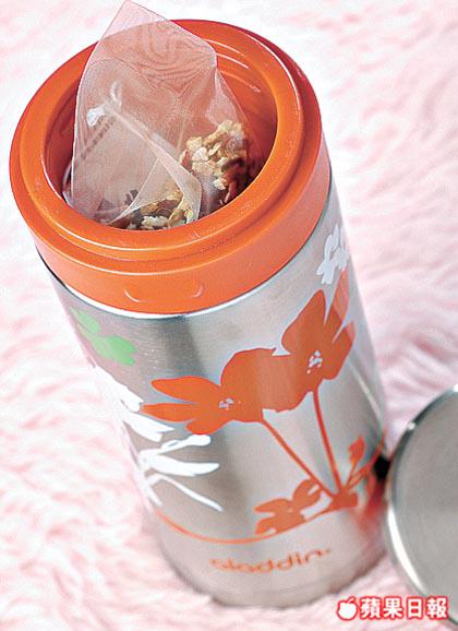 這款Thermos保溫杯用上真空斷熱技術,可保溫6小時之久。茶隔跟杯口連接,可直接放茶包。