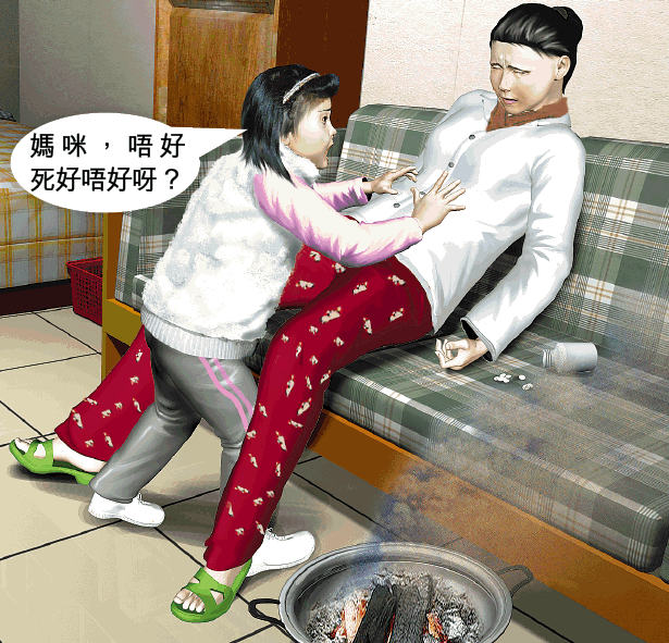 【本報訊】一名感情路上糊裏糊塗的單親媽媽,疑因有婦之夫男友別她而去,大受刺激下在屯門大興邨住所寫下遺書,並向女兒表示:「不如我哋一齊死啦!」然後在女兒面前仰藥及燒炭自殺,女兒哀求無效,慌忙躲入廁所用手機向親戚求救;與此同時,大廈保安員亦接報發現事件報警,母女事後被送院治理,幸無大礙。