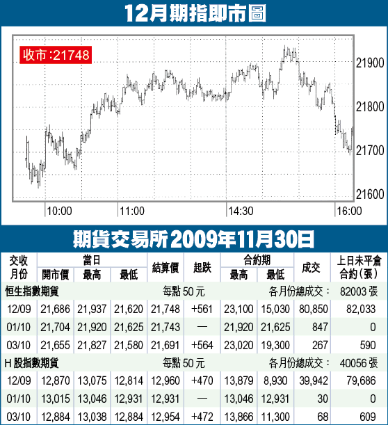 期指大幅高開499點至21686,升破預期阻力,最高升至21937,回補下跌裂口約一半幅度,以21748收市,急漲561點,轉低水73點。