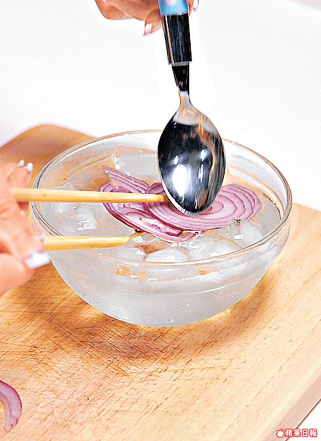 生吃洋葱偏辣,可將洋葱切絲後浸在冰水中,既可減淡辣味,亦可更爽脆。