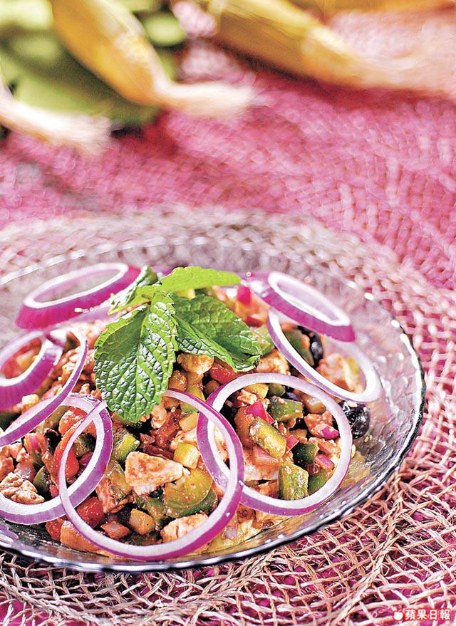 在餐廳常見的希臘沙律,材料有番茄、青瓜、青椒、橄欖和Feta芝士等,因醃橄欖和Feta芝士已有鹹味,加少許鹽,淋上橄欖油及醋即可食用。
