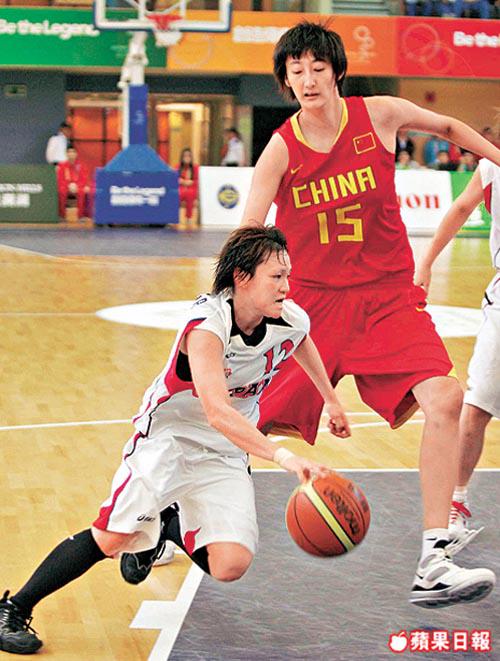 日本女籃控衞吉田亞沙美(左)雖屬全場最矮,只得5呎5吋,昨面對全場最高、達6呎9吋的中國中鋒魏偉(右)仍毫無懼色入楔鏟籃,打足全場下更領日本以59:54擊退中國。