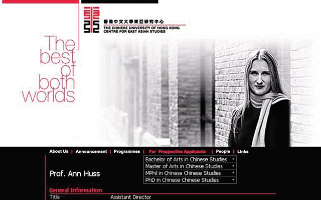 遭滋擾的女教授AnnHuss,現年42歲,在美國紐約出生,能操流利普通話,中國名字何素楠,06年來港加入中大東亞研究中心,現時任職助理主任。