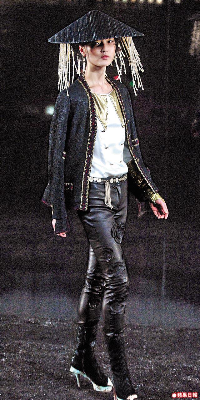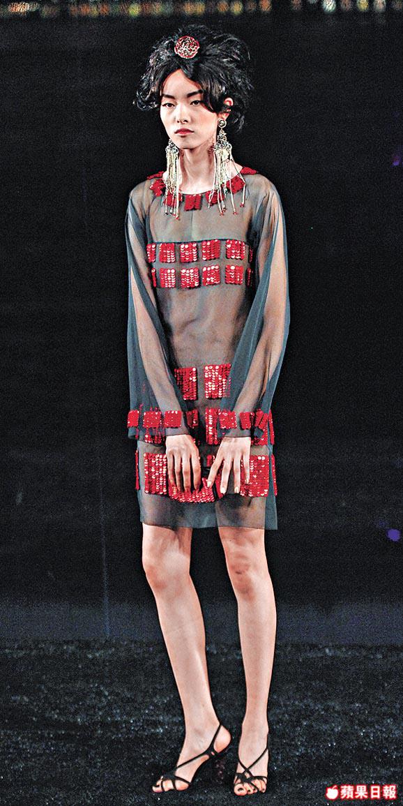 Chanel的Paris-Shanghai系列,中國靈感與喜慶大紅是預料之內的,紅不時配黑,由古到今的中國服:包括清兵帽、珠釵、闊袖大衣、旗袍領、紅衞兵帽及jacket配以皮革、雪紡以及必然Lesage精細的羽毛刺釘工等,中西古今共融得自然也有戲味,中國人會心微笑,捧中國熱的老外的發燒程度更加可以想像。
