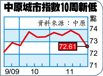 【本報訊】杜拜債務危機除令港股一度大瀉外,樓市亦受拖累出現調整,反映二手樓價的中原城市領先指數最新報72.61點,較上周的73.56點急跌0.95點或1.29%,不但創10周新低,亦是一年多以來跌幅最大的一周。不過,中原地產研究部聯席董事黃良昇認為,隨着危機迅速淡化,樓價也出現反彈,預料指數會回升。