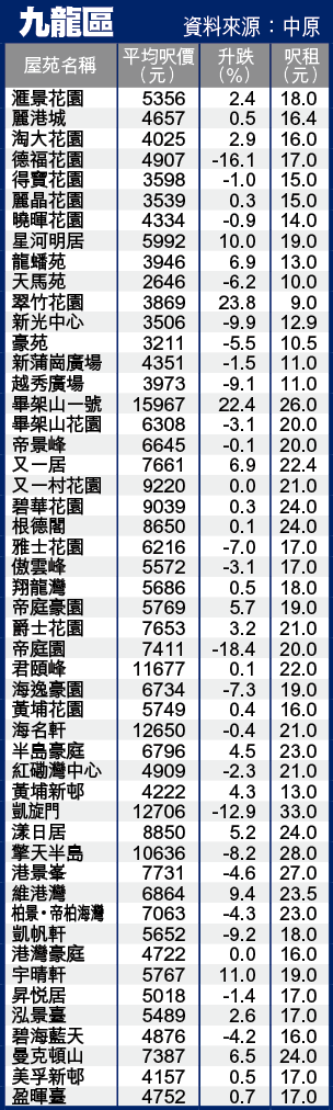 香港200屋苑一周行情--九龍區