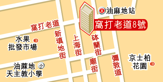 矗立上海街及窩打老道交界的窩打老道8號,以一身「豪」氣打扮,成為油麻地區新貴。物業屬區內最高聳的雙座式住宅物業,除有同區罕有的會所設施外,高層單位更可眺望京士柏遊樂場、九龍北部山巒遠景、新油麻地避風塘海景、鯉魚門海景及維港,論物業景觀及檔次,同區難尋。