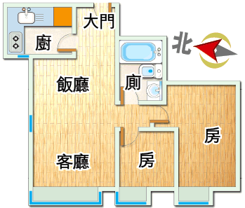 兩房一大一小,大房有衣櫃凹位。浴室無窗,廚房企理,雪櫃及洗衣機都夠位擺放,惟單位空置一段時間,須好好清潔才可入住。