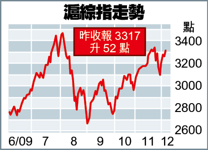 滬綜指昨早段在銀行股帶動下一度上破3300點,惟臨近中午沽壓乍現,拖累大市一度倒跌逾1%,其後以中石化(386)為首的重磅股發力,令大市再度抽高,並成功守穩3300大關,收3317點,升52點(1.61%);深成指漲125點(0.91%),收13884點。