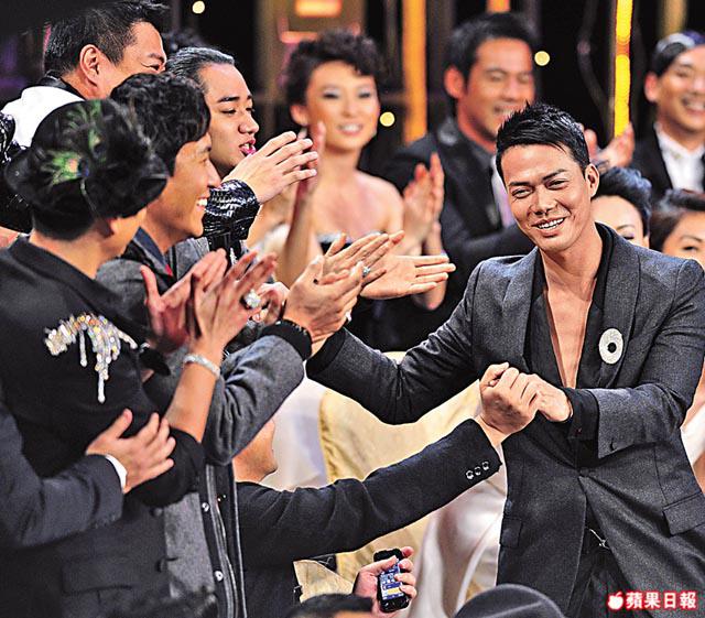 45歲的黎耀祥昨晚不但眾望所歸贏得視帝寶座,更撼低Laughing哥謝天華奪得我最喜愛的電視男角色和tvb.com人氣大獎,成為三料視帝,成績彪炳。黎耀祥昨晚獲獎時,全場演員起立為他鼓掌歡呼,他跟出爐視后鄧萃雯擁抱互相道賀。