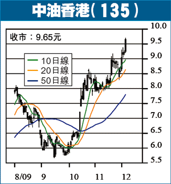 從呢個角度判斷,中油香港尚有炒作話題,預期後市走勢將繼續反覆向上,昨日收9.65元,升4.6%,突破10元大關應指日可待。