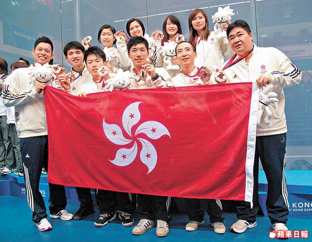 男團方面,戰況與女團一樣,打頭陣的劉少維先輸兩局,幸最終以3:2反勝;加上歐鎮銘贏波,為港隊再添1金。教練蔡玉坤表示︰「壁隊暫奪4金(男、女單,男、女團)已是完成目標,但我們仍會盡力為港爭取佳績。」壁球今日續上演男、女雙及混雙賽事。