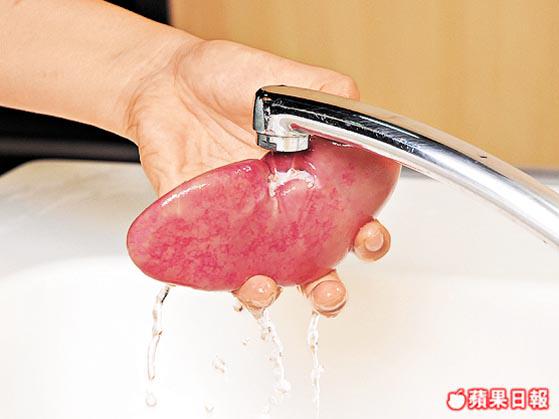 在豬腰底及面加些鬆肉粉捽1分鐘,然後冲水即可。