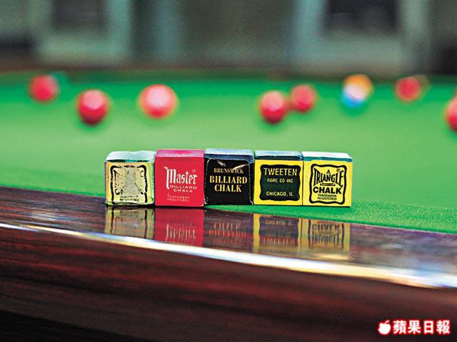 比賽時,球手每次出Cue後都會擦一擦Chalk粉,以增加Cue頭磨擦力,減低撻Cue機會。何解Chalk粉顏色如粉筆顏色一樣多?「一般香港用的都是藍色、綠色或藍綠色,主要是配合英式桌球枱顏色,美式球桌的絨布面是紅色的,所以會用紅色Chalk粉,還有一些油性Chalk粉,適合乾旱地方使用,令粉末易黏上Cue頭。」