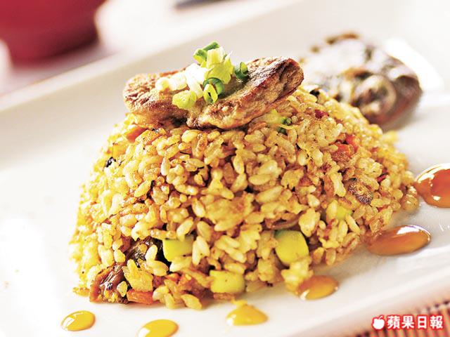 8.保留鑊中的鵝肝油,原鑊加炒飯炒香上碟,最後面放鵝肝即完成。