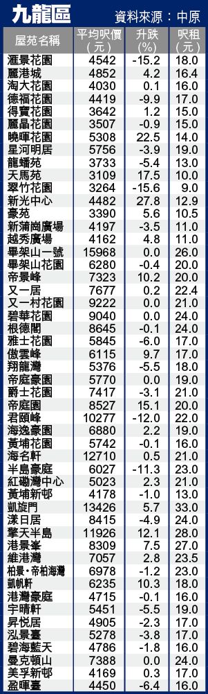 統計日期30/11-6/12 (升跌幅為與前周比較)