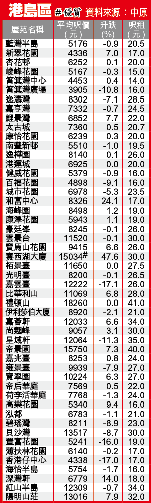 統計日期30/11-6/12 (升跌幅為與前周比較)