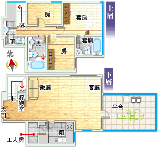間隔:3房(1套)2廳;另工人房及貯物室