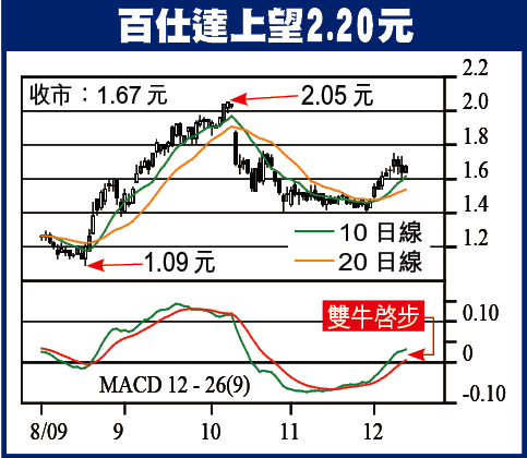 2)今周副選看好百仕達控股(1168),好事近,爆升在即,目標2.20元,升幅32%。