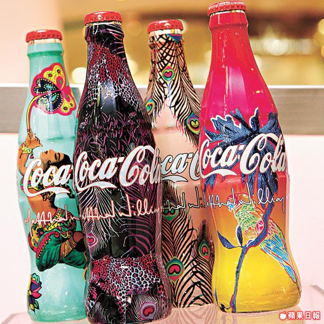 第二期的展覽現正進行,Nelson提供的展品中,有RobertoCavalli的AnimalPrint可樂樽,「他的時裝最著名的都有豹紋,因此可樂樽也有豹紋。而且由於他是意大利人,意大利的可樂比我們的Size都要小一點。」另展出英國設計師MathewWilliams的可樂樽,色彩一如其作品,十分鮮艷奪目。