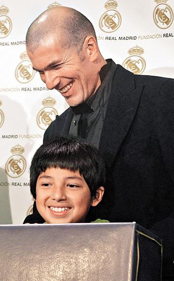 法國球王施丹(右圖)與巴西中場卡卡(左圖)愛心無限,周四出席皇馬的聖誕節慈善活動時,代表皇馬的慈善基金向新移民的小孩子送上5,000份聖誕禮物。路透社