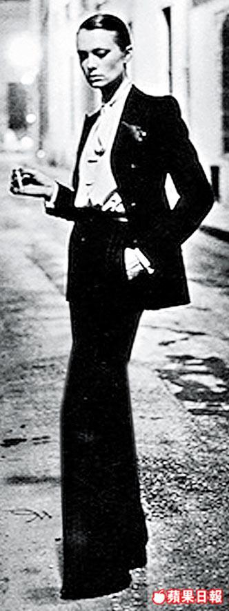 HelmutNewton於75年在巴黎RueAubriot拍下的這張LeSmoking照,截至目前為止都是天下時裝迷的alltimesfavourite,那條高腰喇叭褲,絕無低俗放浪視效,反之是傳世classic。