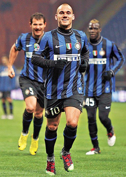 國米於意盃憑史奈達(中)的入球,主場1:0小勝利禾奴,順利打入8強。美聯社
