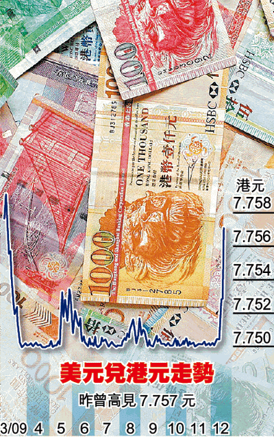 美電昨升約36點子,從開市時約7.7540逐步攀升至7.7576水平;恒生銀行(011)投資顧問服務主管陸庭龍表示,近日確有資金流出情況,部份原因是市場藉杜拜及希臘等外圍隱憂,調整本身組合並借勢套現,美息曲線拉斜亦驅動港美息差拉闊,令之前持有美元短倉的投資者掉頭沽港元平倉。