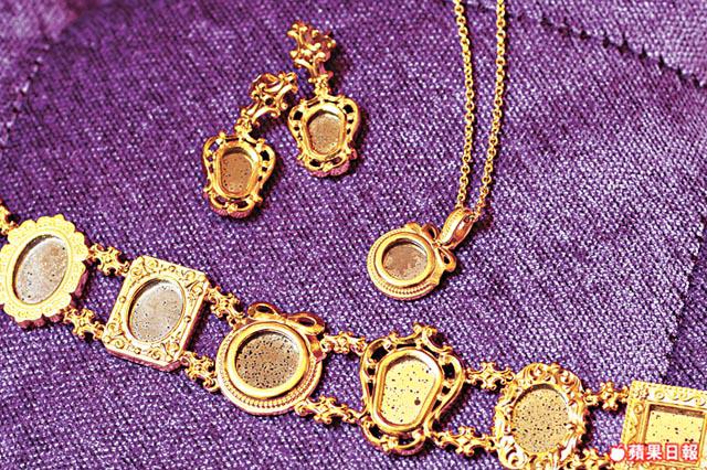 不同顏色的晶石能製造出豐富的視覺效果,以懷舊的古銅色圍邊,藍色、粉紅、黃和綠等繽紛的晶石配搭,猶如一片片奇幻的魔法石。