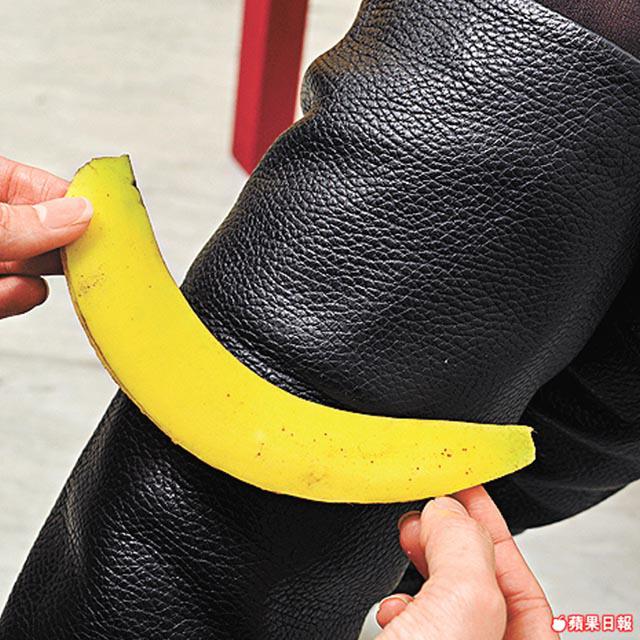 有說蕉皮可擦亮皮革,本來不相信,但實在有太多人試過話成功,把心一橫試擦冬天必備的皮靴,果然有效!做法是撕開蕉皮,然後分成一片片,用蕉皮向內一面輕擦皮靴,皮靴被弄得濡濕了,再用乾紙巾抹乾,等一會兒,皮靴確實光亮好多,有人試過擦梳化,但要用好多蕉皮,還是擦擦皮製小配件算了。