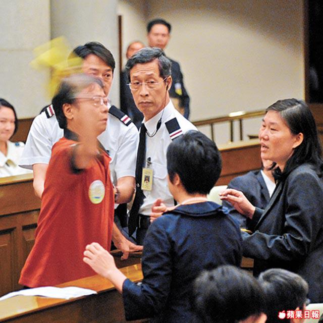 特首發表施政報告,黃毓民忽然掟蕉襲擊曾特首,被揶揄過份激動似做Show。