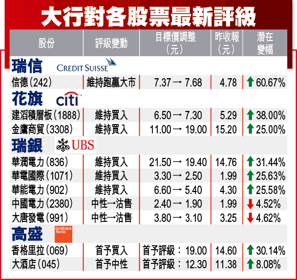 花旗指IT業盈利復蘇,帶動業界再增投資,令製造電子產品的印刷線路板主要材料覆銅面板需求增,刺激建滔積層板(1888)下半年盈利大幅改善,相信其未來盈利有理想增長,故上調該股目標價至7.3元。建滔板昨逆市升3.7%,收5.29元,具38%升值潛力。