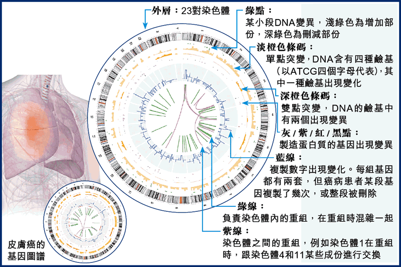 研究結果發現,肺癌病人的基因組有23,000個變異,皮膚癌有33,000個,當中只有小部份是致癌的「驅動器」,這小部份正是要找出來對症下藥的頭號目標。