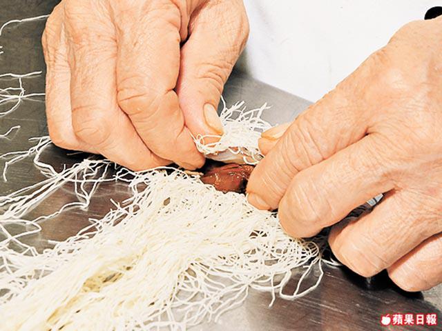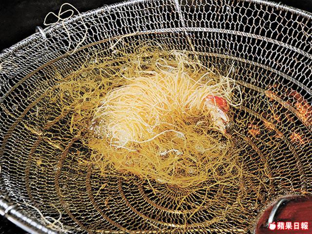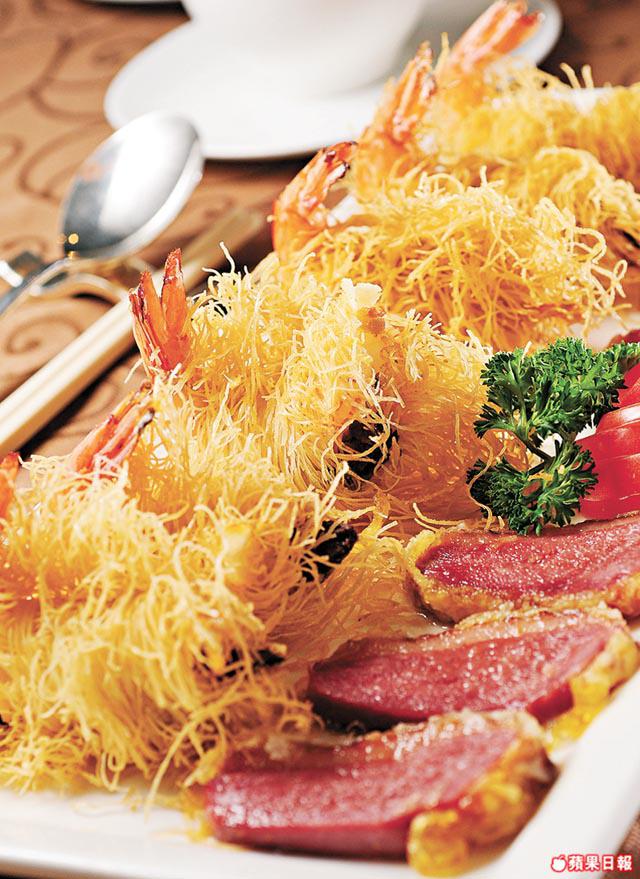 濃味的鵝肝和鮮甜的中蝦味道相當匹配,再捲上千絲酥炸至香脆,口感豐富。千絲酥可到蛋糕材料專門店買到,每包約$10。