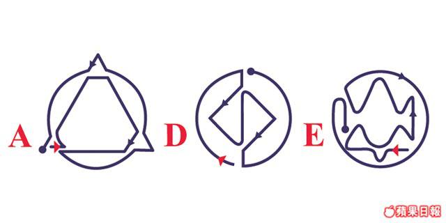 以下有六個圖案,其中有三個圖案可以一筆畫到,其餘三個則不能。大家可不可以把能一筆畫到的圖案找出來,還有這一筆要如何畫出來呢?提提大家,每條線只可以畫一次,而且不可以超越其他線來畫。