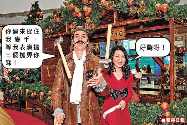 騷中任主角的Zani,在團中任搞笑角色,「另外我玩高蹺、玩火又玩踩鋼索。」畫上假鬍子的他一見Bella就口花花:「我來教她,無問題,但她是不是會吻一吻我?FrenchKiss可以嗎?」搞完笑,Zani即教雜技ABC,槌仔在他手上隨意飛舞,看來像膠槌,原來個個紮實,一不小心保證頭破血流。Bella:「好驚呀!」由於緊張,教了兩招都未能過關,Zani送大禮:「她表現不錯啦!MerryX'mas!」