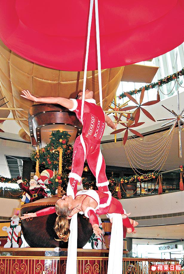 沒爸爸、沒情人,可也沒遺憾。因為聖誕本來是開心的,今年Bella便來到ifc。這邊的聖誕裝飾,為一巨型飛船。香港人早就被寵壞,以往30呎聖誕樹都是新聞,如今看到飛船都只係小意思,有騷睇就唔同,吸人流力量特別強。聖誕期間,ifc每天都有詩歌詠唱,及由巴黎來港的LesFarfadais藝團表演。記者與Bella率先看了藝團首場演出,Bella大讚:「空中倒吊很厲害,但自己最喜歡是開場白色有翼的高蹺藝人,他的出場十分優美。」LesFarfadais既有體操底子深厚的倒吊藝人,又有肚皮舞、火藝、打觔斗等等,拋槌仔自然係小兒科啦!Bella初入表演行業,點可以唔學吓先?