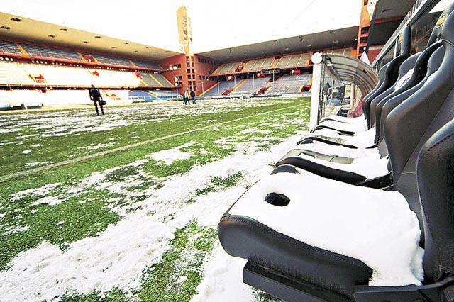 天雪嚴重影響今輪意甲,看熱拿亞費拉里斯球場的雪景,便明白何故對巴里之戰要改期。