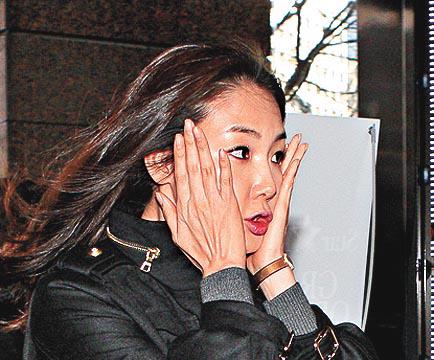 ●韓星崔智友昨日凍到鼻紅,與Rain在首爾出席百貨公司的星光大道開幕儀式。