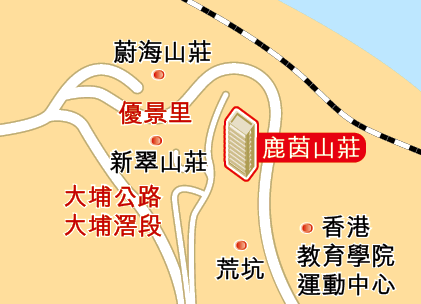 大埔公路大埔滘段俗稱大埔舊路,沿線豪宅不論名氣及景觀質素,均屬區內頂級之選,當中以鹿茵山莊規模最大,樓價亦是同區最貴,堪稱大埔區豪宅一哥。物業座落地勢較高的山腰較凸出位置,大部份單位均享有開揚吐露港海景,雖然前臨白石角海旁豪宅新區,景觀有變數,但不致於完全阻隔海景。