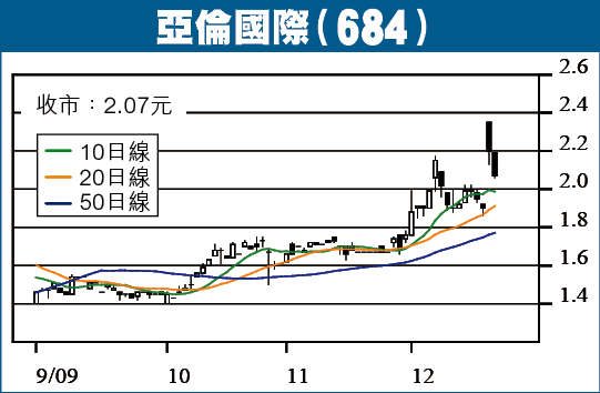 亞倫國際(684)是產銷家庭電器的工業股,受惠於成本下降,毛利率得以大幅上升,業績獲得顯著增長,一度刺激股價急升。