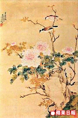 另一枚牡丹、白頭翁的畫作,以柔和的天藍色作底色,牡丹代表富貴,白頭翁寓意長壽,恰恰是國畫中講求如意的精神。