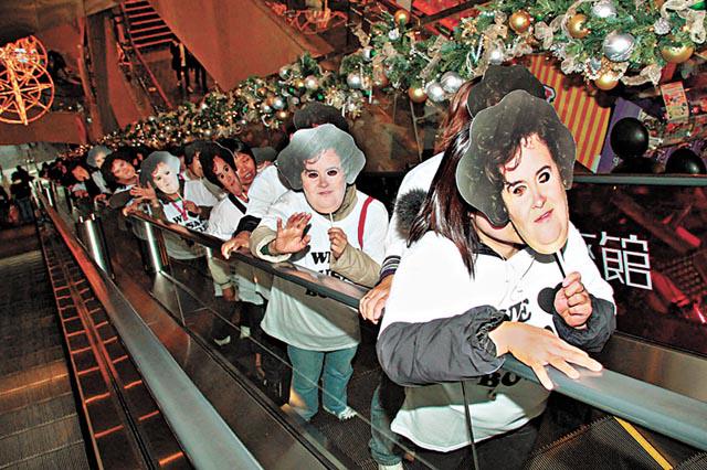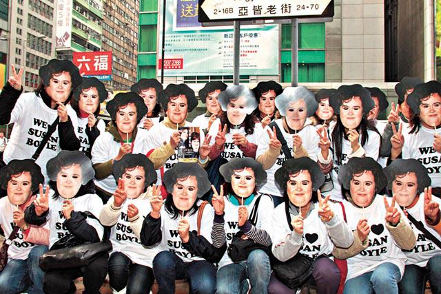 靚聲村姑蘇珊博伊爾(SusanBoyle)旋風席捲全球,臨近聖誕,日前有20名香港蘇珊fans戴上自製面具及身穿印有WeLoveSusanBoyle字樣的tee走到旺角一帶佈佳音。