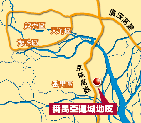 【本報訊】中央近月多次出手調控樓市及欲打擊發展商囤地,仍難遏止發展商投地熱情。昨日廣州國土局拍賣內地史上最高價的番禺亞運城地皮,雖只有國企及民企兩大陣營財團對決,但最終仍以高底價逾54.5%的255億元(人民幣.下同)成交,由富力地產(2777)、碧桂園(2007)及雅居樂(3383)所組民企財團奮勇奪魁。 記者:林志光