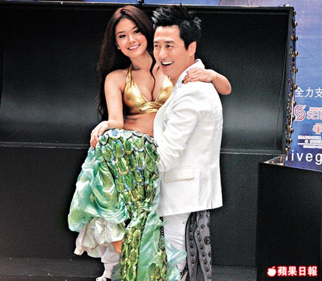 周秀娜(Chrissie)前晚化身性感美人魚,為庾澄慶(哈林)的演唱會拍攝片段。穿上金色比堅尼的Chrissie大騷驕人上圍,她更透露將在演唱會上與哈林共舞。